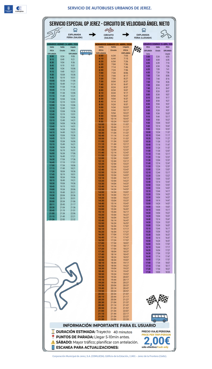 - Lanzadera Parking C: Servicio gratuito de conexión interna en el aparcamiento del circuito.