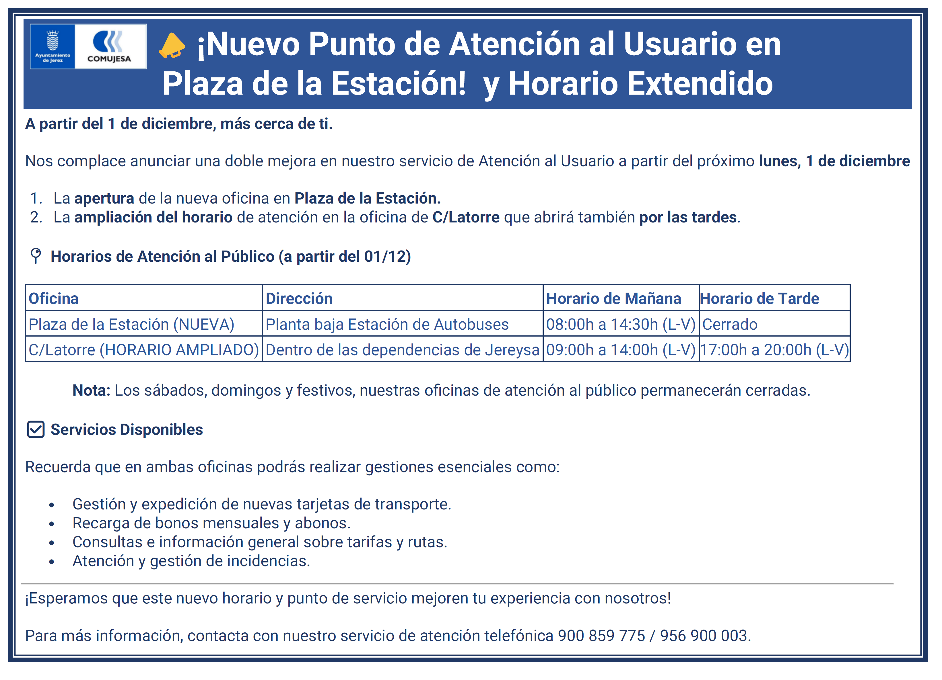 ¡Nuevos Puntos de Atención al Usuario y Horario Extendido!
