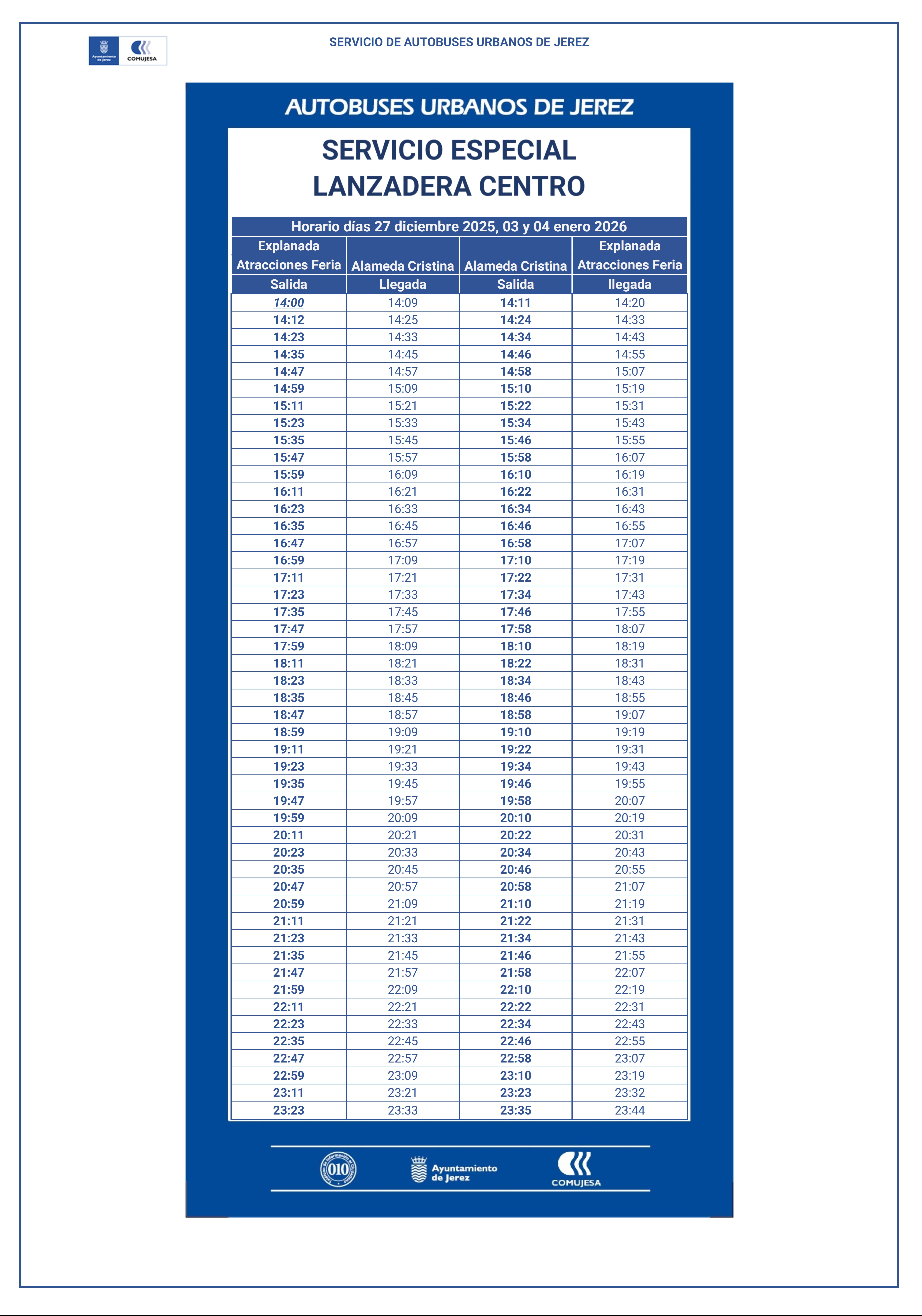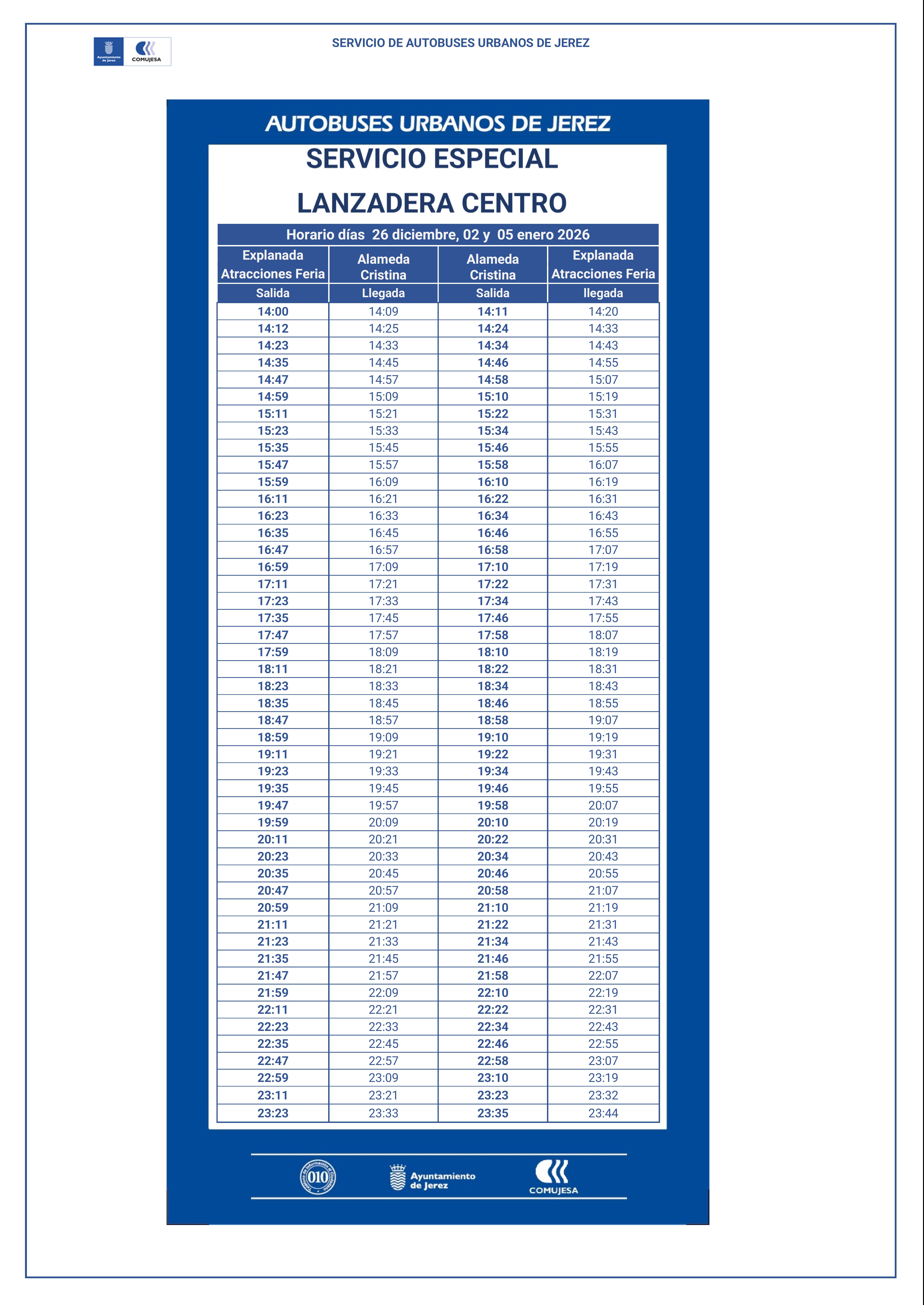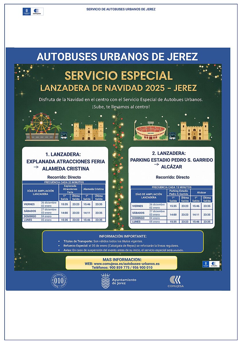 Servicio Especial de Autobuses: Lanzaderas de Navidad 2025 – Jerez