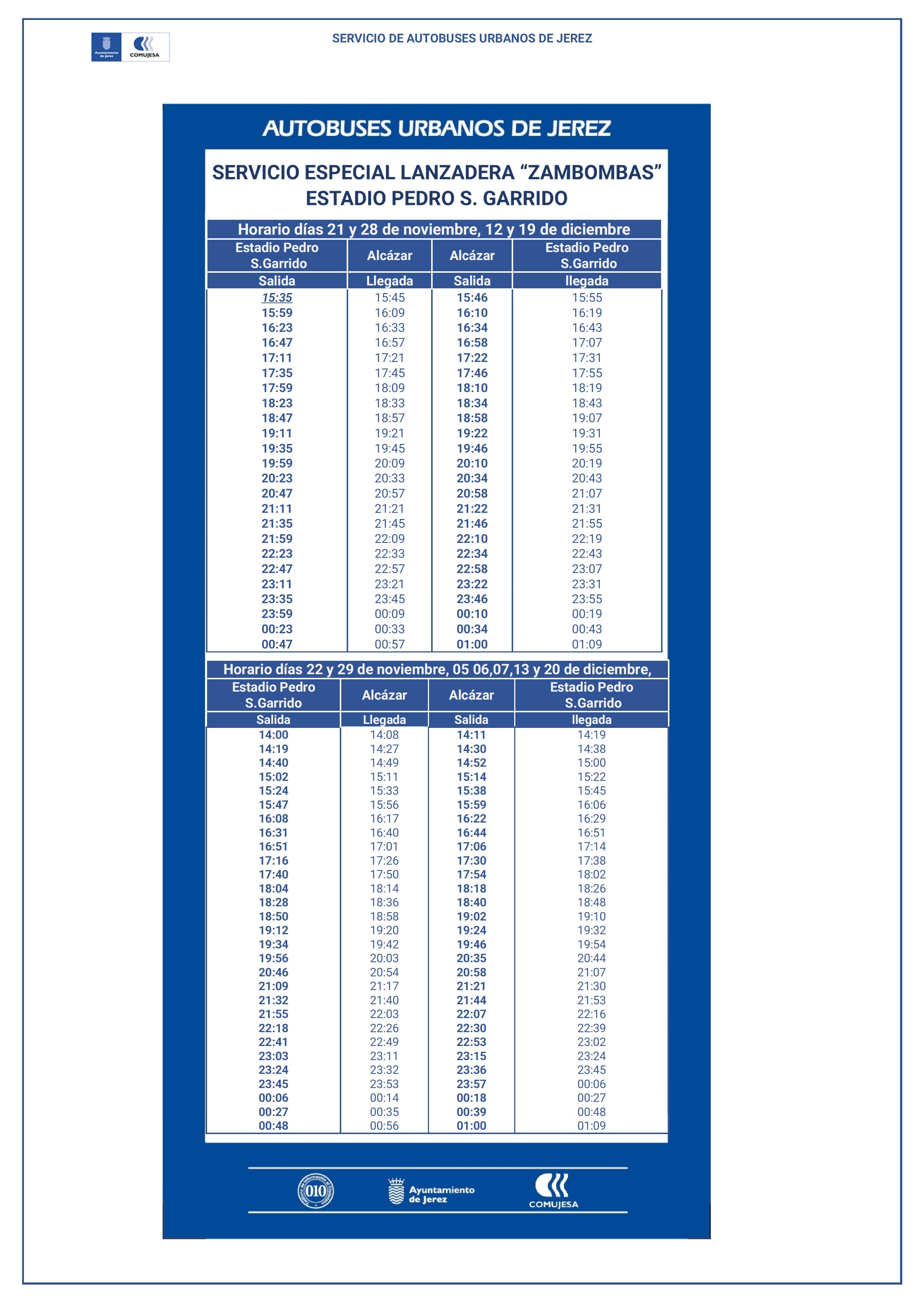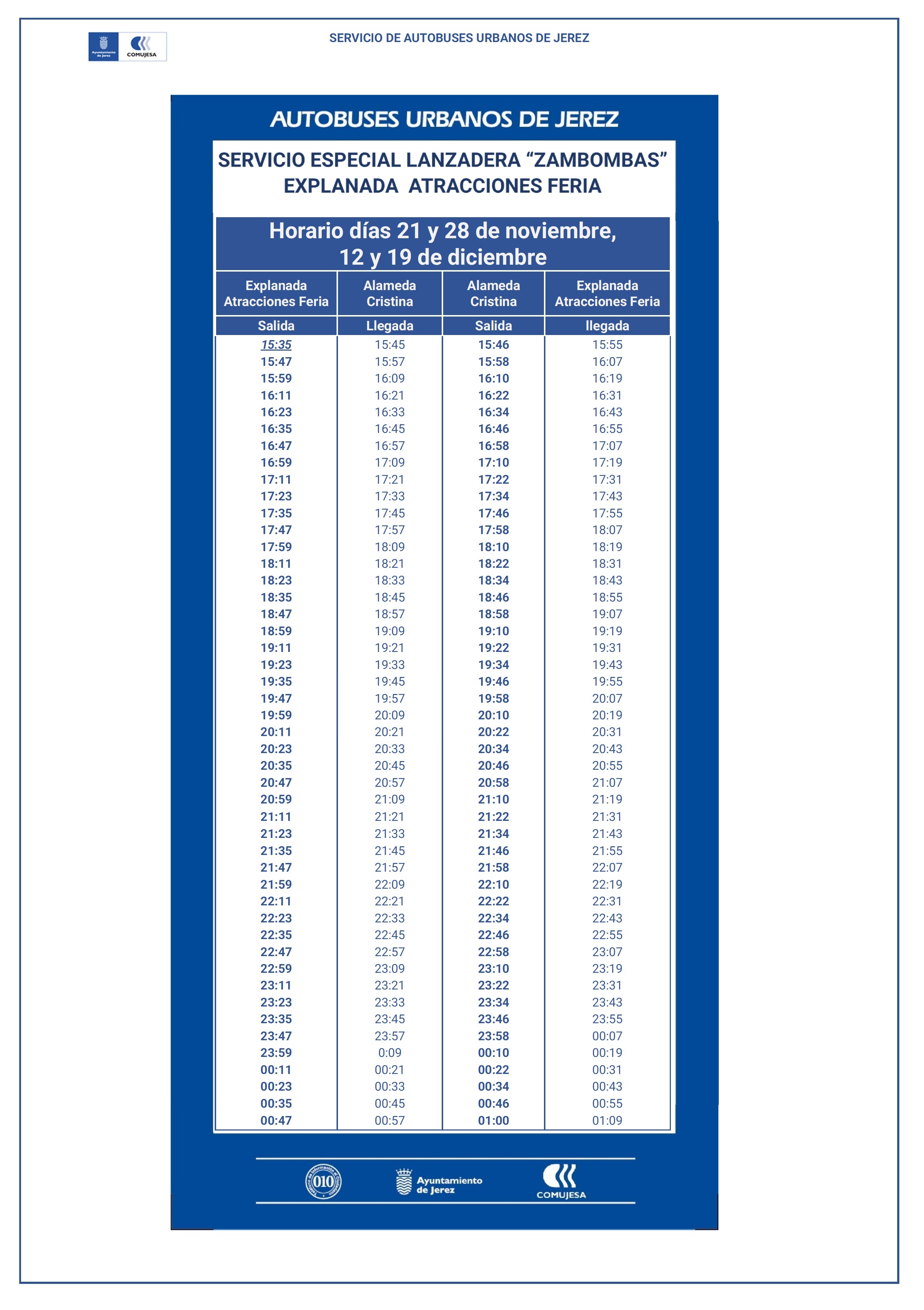 Por tiempo limitado, el Servicio Especial Lanzadera Zambomba es TRANSPORTE GRATUITO HASTA NUEVO AVISO.